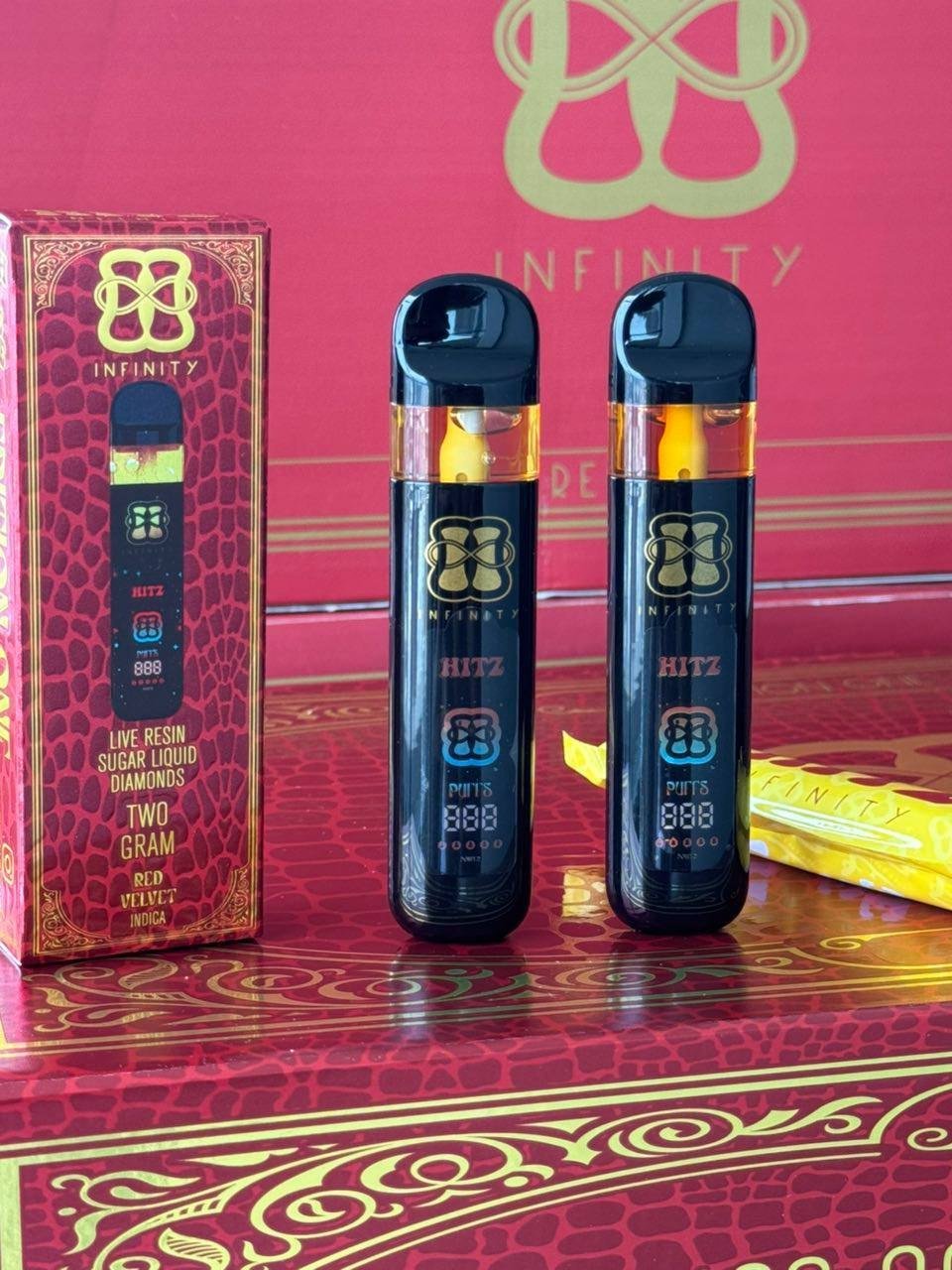 The HITZ Infinity Disposable is the next evolution in the HITZ line. It features enhanced airflow, faster heating, and longer-lasting battery life. Combined with top-tier cannabis extracts, the Infinity series offers a smoother and more powerful vape — every time.